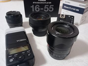 Vendo in blocco per passaggio a FF Fuji xt4 praticamente perfetta, solo il gommino è leggermenta tagliato in un punto.