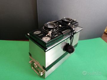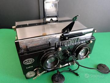 Difficile da rendere in fotografia la bellezza di questa macchina. È una STEREO 6X13 in acciaio INOX È come NUOVA. Ottica Zeiss Tessar . Completa di magazzino porta lastre push-pull. Peserà almeno 1,5 kg. Viene fornita con la sua custodia originale in cuoio pesante, rivestita internamente in velluto verde. Cedo secondo formula AS. IS