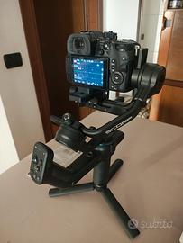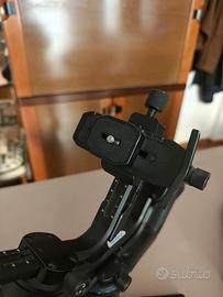 Stabilizzatore per fotocamere mirrorless, peso 1,2kg, in grado di compiere classici movimenti e la possibilità di rotazioni a spirale 360°, massimo carico 2kg, in buone condizioni con qualche segno di usura. Un difetto presente è l'assenza della vite che blocca la rotazione orizzontale quando spento, fornisco in dotazione una chiave che serve proprio a questo. Vendo con scatola e dotazioni.