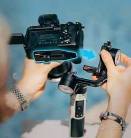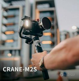 Zhiyun Crane M2S Gimbal Portatile Stabilizzatore a 3-assi design all-in-one per Fotocamere mirrorless Sony, Canon, Nikon, Smartphone iPhone, Sumsung, Telecamere d'azione Gopro. Con un peso di soli 705 grammi, questo leggero concentrato di potenza raggiunge il perfetto equilibrio tra portabilità ed elevata capacità di carico. Una sorgente luminosa minuscola ma potente, non più grande di un'unghia garantisce una luminosità fino a 1000 lux. la batteria fino a 8 ore di lavoro.