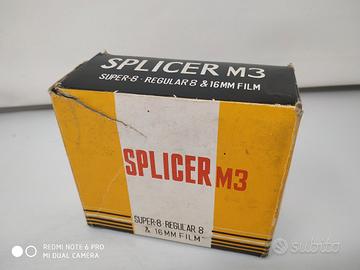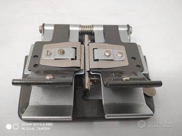 Oggetto vintage per collezionisti e appassionato di cinema. L'oggetto mostrato nell'immagine è una giuntatrice (o splicer) per pellicole Super 8 e 16mm. Il suo scopo è unire due spezzoni di pellicola, tagliandoli in modo preciso e applicando un nastro adesivo speciale per la giunzione.