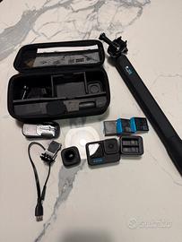 Vendo Go Pro 10 Black con custodia, selfie stick piccolo e selfie stick grande allungabile, set di 3 batterie con base caricatore doppio, lente mod per ovviettivo Max per fare video superstabilizzati grazoe al blocco dell’orizzonte. Vari agganci per caschi. Usata pochissimo.