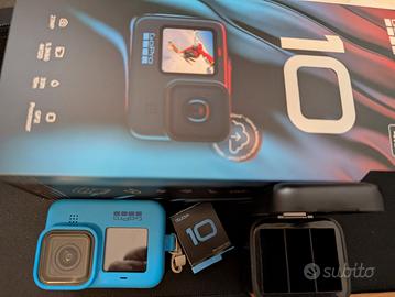 Go Pro Hero 10, piu cavalletto originale e accessori mai usati come da foto, piu 2 batterie e caricabatterie con 3 slot, piu sportello di ricambio con foro usb C per alimentarla esternamente per lunghissimi time lapse originale, micro sd da 32 giga, vendo per inutilizzo. Sempre usata con coprivetro.