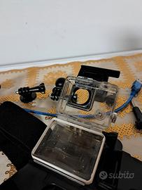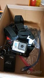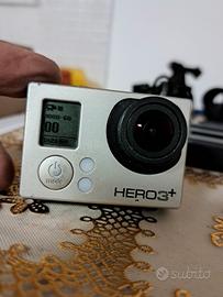 Go Pro Hero 3+ con 2 batterie , carica batterie esterno con cavo usb ,, pettorina , guscio per impermeabilità proteggi lente, vari accessori e supporti , scheda sd 16 GB , perfettamente funzionante