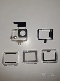 Vendo per inutilizzo go pro hero 4 Silver in scatola originale, con pezzettino di plastica mancante sopra la fotocamera come in foto, che non inficia in nessun modo sul funzionamento. Vendo anche Custodia, danneggiata e non utilizzabile per riprese subacquee a causa della crepa, con relativi vetrini. La custodia è da maneggiare con cura per evitare che si allarghi la crepa. Preferisco consegna a mano. Per maggiori informazioni scrivetemi
