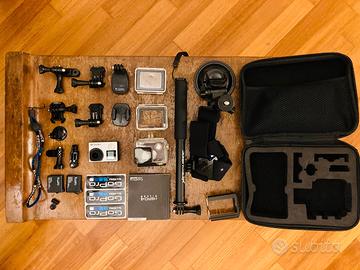 Vendo per inutilizzo GO PRO HERO 4 SILVER utilizzata pochissime volte, senza graffi, condizioni perfette pari al nuovo, completa di molti accessori originali fra cui: