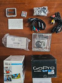 Go Pro non so che modello è ne di che anno, ma è nuova letteralmente nuova, pensavo di averla smarrita, invece era solo in magazzino, comunque è davvero nuova non ho avuto modo di usarla. La Go Pro è completa di tutto tutto, scheda memoria, custodia protettiva, attacchi vari per i vari usi, manuale uso, garanzia (scaduta penso) cavi ecc. ecc.