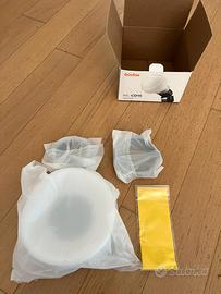 Il Godox ML-CD15 è un innovativo sistema di illuminazione per uso universale. Si tratta di una cupola che si posiziona intorno alla sorgente luminosa per ottenere una piacevole morbidezza e un bell'aspetto. L'ML-CD15 è una cupola pieghevole. È possibile utilizzarla in modi diversi per dare forma alla luce. È possibile utilizzare la cupola nella sua interezza per un'illuminazione a 360 gradi, oppure piegarla a metà in modo che la luce si diffonda a 180 gradi. Se si piega la parte anteriore, è possibile modificare la luce per ottenere una maggiore dimensionalità. Il materiale morbido offre una luce a pannello con morbidezza variabile. Gli adattatori inclusi consentono di decidere quale sia quello necessario.