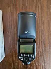 Vendo flash a Slitta per Sony godox V1 pari al nuovo usato un paio di volte all'anno. Comprato in negozio con base della Slitta in metallo cambiata da loro, come sapete quella di default è in plastica e si rompe facilmente. Completo di scatola, custodia, base per flash, batteria originale e basetta di ricarica con ingresso Usb-c. Vendo per inutilizzo