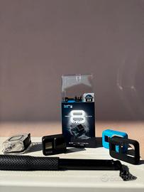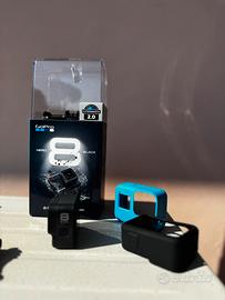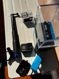 Action camera GoPro Hero 8 Black tenuta in maniera eccellente, completa con custodia protettiva.