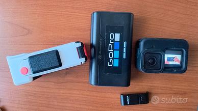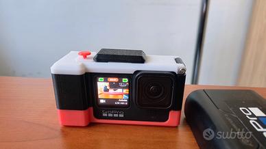 Gopro 9 hero black, in perfette condizioni. Gopro completa di 2 batterie e alloggio caricatore per 3 batterie,cover in silicone, cover stampata in 3d per avere impugnatura fotografica con tasto di scatto come da foto.