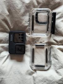 Vendo cofanetto con GOPRO HERO 9 USATA con tutti i componenti del bundle accessori. Fotocamera HERO9 Nera - 2 batterie ricaricabili - Supporto adesivo curvo - 3 fibbia di montaggio + 3 vite a pollice - Cavo USB-C - Cinturino da polso con portaGoPro Manuale. Da notare come da fotografia allegata piccolo difetto a livello dei due aggangi inferiori (invisibile se chiusi verso l'interno), la gopro si aggangia senza problemi al mandrino nonostante questo difetto. Completa di custodia subacquea.