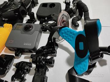 GoPro fusion 360 perfettamente funzionante che registra a risoluzione altissima fino a 5.3K ed è impermeabile fino a 5m senza custodia. Si connette all'app GoPro Quick per gestire le registrazioni e le impostazioni. Tantissimi accessori tra cui una pettorina, galleggiante, supporto per casco, attacchi vari, tripod ecc..Pellicina in gomma leggermente sollevata da un lato e qualche micrograffio sulla lente assolutamente non influente. #gopro #goprofusion #gopro360 #caméra360degrés #camera360 #actioncam #videocamera360 #360camera #gopromax #accessorigopro #goproaccessoires #goprohero