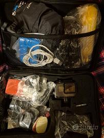 Vendesi causa inutilizzo Gopro HD hero 5 iper accessoriata. come si vede dalle foto disponde del suo case intero comprensivo di: Kit subacqueo (galleggianti vari), fascia da petto, bastone telescopico, polipo, ventose per moto/auto/bici, cavo si ricarica, batteria e memodia aggiuntive e svariati ricambi. Perfettamente funzionante, contattare se interessati.