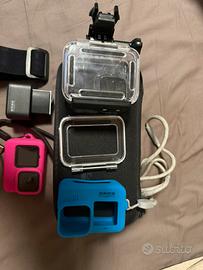Vendo per passaggio ad altro modello GoPro Hero 10 Black usata poco e sempre tenuta in modo maniacale. Completa di due cover in silicone (azzurra priginale rosa non originale), una cover subacquea oroginale, supporto per caschi elastico originale, 3 batterie originali con caricatore esterno, il tutto nella box orignale. Preferisco scambio a mano, possibile spedizione.