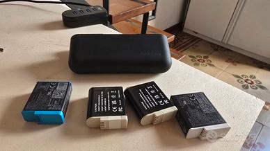 4 batterie ricaricabili aggiuntive (3 nere + 1 blu – compatibili GoPro, ottime capacità per sessioni lunghe)
