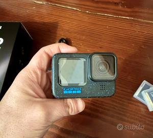 Vendo GoPro HERO12 Black come nuova, usata pochissimo e perfettamente funzionante, senza graffi né segni di usura. Inclusa 1 batteria originale + 2 batterie extra con caricabatterie esterno, stick di ottima qualità, valigetta completa di accessori (supporti per bicicletta, polso, moto e casco) e protezione subacquea di ottima qualità. Disponibili anche scatola e cavo originali. Vendo per inutilizzo. Prezzo € 190 leggermente trattabile.