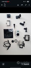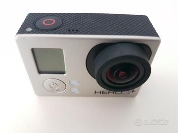 GoPro Hero 3+ Silver Edition perfettamente funzionante, completa di scatola originale e accessori. La camera è equipaggiata con il Battery BacPac originale. Esteticamente presenta qualche normale segno d’usura negli angoli dovuto all’utilizzo, che però non ne compromette minimamente l'integrità o il funzionamento. Il BacPac invece presenta plastica "cotta" dal tempo e risulta appiccicosa al tatto ma funzionante. Segnalo anche un piccolo segno estetico sul tasto frontale causato dalla pressione della custodia subacquea, ma il comando rimane fluido e reattivo al 100%.