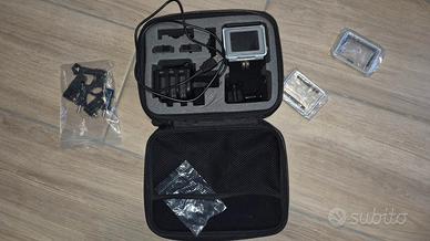 Vendo GoPro Hero 4 usata pochissimo, come nuova con 3 batterie, caricabatterie, cavo, 3 diverse cover e accessorio con supporto per il petto