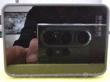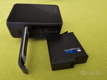 GoPro hero 5 black completa di batteria e cavo di ricarica originale + telecomando wifi completo del suo caricabatteria originale. Tutto perfettamente funzionante. Unico difetto, come da foto, sportellino porte USB con attacco rotto (quindi se si ricarica la videocamera non resta attaccato al corpo), questo non compromette il funzionamento, ma comunque è un accessorio acquistabile sia originale che non.
