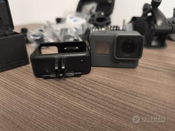 vendo goPro hero6, utilizzata poco, accessori di fissaggio completi, caricabatterie aggiuntivo e 3 batterie totali, un solo graffio nella zona dello sportellino del caricabatteria, per il resto come nuovo