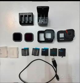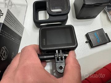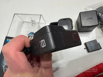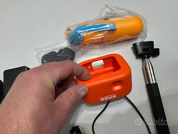 Vendo GoPro Hero 8 Black completa di accessori. - Custodia protettiva arancione - Mini treppiede flessibile rosso - Asta selfie - Custodia protettiva nera - 5 Batterie - Cavo di ricarica USB - 2 stazioni do ricarica batterie - scatola - 1 galleggiante per usare gopro in acqua