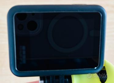 Action cam completa di due battere, caricatore miltiplo e altri accessori.