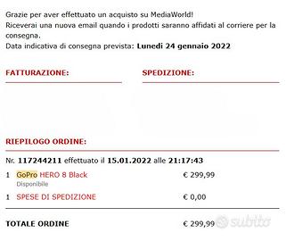vendo GoPro Hero 8 Black per inutilizzo usata in pochissime occasioni sono presenti ancora le pellicole!! In regalo un kit accessori comprato su Amazon del valore di 38.99 praticamente mai usato!