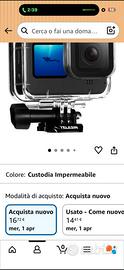 Vendo per regalo che non utilizzo, ricevuto a novembre 2025 su Amazon, del valore totale di € 622 circa, GoPro Hero 13 Black con Pacchetto accessori (include Handler -impugnatura flottante-, 2 batterie Enduro, 2 supporti adesivi curvi, custodia per il trasporto, cavo di ricarica, agganci) del valore di € 420+custodia impermeabile del valore di € 16 + nr 2 agganci magnetici per GoPro Hero 13 Black del valore di € 30 cad.uno, GoPro Chesty supporto da petto del valore di € 45 + GoPro 3 way 2.0 (impugnatura che diventa treppiedi) del valore di € 50 + FitStill Set protezione per GoPro Hero 13 black del valore di € 31, per un totale di € 622 VENDO A 470 PER INUTILIZZO. NB VIENE VENDUTO CON TUTTE LE CONFEZIONI ORIGINALI, IL TUTTO PARI AL NUOVO, IN GARANZIA FINO AL 07/10/2027, sprovvisto di memoria da 64 gb perché mi serve ma considerando il risparmio si può acquistare a parte con pochi euro.