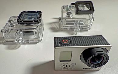 GoPro Hero3 con batteria originale AHDBT-302, custodia impermeabile, custodia standard, scheda SD 32GB, due fibbie di montaggio, libretto di istruzioni