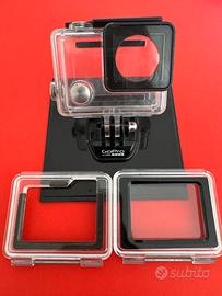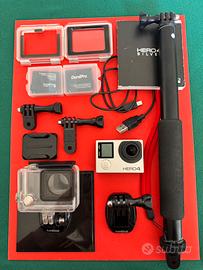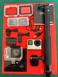 GoPro HERO4 silver edition + accessori - perfettamente funzionante Vendo: 1 action cam go pro HERO4 2 batterie una originale e una Dura Pro nuova usata solo una volta comprata a dicembre25 1 cavetto di ricarica 1 custodia subaquea impermeabile fino a 40 metri (perfettamente funzionante utilizzata a gennaio 2026 in immersioni subaquee) 1 sportello posteriore Touch 1 sportello posteriore Skeleton 2 supporti snodi/mount standard GoPro 1 base adesiva per casco, auto, ecc 1 quick release buckle 1 selfie stick telescopico da 90 cm con polsino Manuale di istruzioni