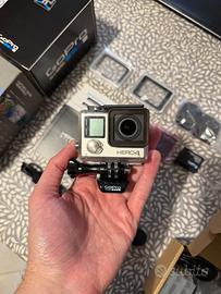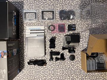 Vendo GoPro HERO4 Silver con tutti gli accessori originali presenti in foto: Custodia ermetica con 3 pannelli schermo Staffe e ganci di fissaggio Tappi per proteggere l’obiettivo Batteria originale Cavo di alimentazione USB Manuali Kit di 3 batteria di riserva con caricatore La videocamera è in ottime condizioni. Perfettamente funzionante.