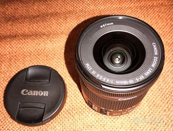 Perfetto. Nuovissimo zoom. Completo di confezione originale e filtro UV da 67 mm. Vendo per passaggio ad altro obiettivo. Canon EF-S 10-18mm f/4.5-5.6 IS STM è un obiettivo grandangolare per formato APS-C, prodotto dal 2014. La messa a fuoco avviene tramite Stepper Motor, è presente la stabilizzazione d'immagine. Cell. 3498552916