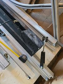 Vendesi guida di per tenda e fondale da sipario o fondale tutta in alluminio pesante molto robusta Materiale praticamente nuovo usato solo al chiuso e pochissimo. Mai usato per service ma solo in studio per una sala di posa fissa. Lunghezza complessiva circa 26 metri. Sono presenti anche le parti curve che fanno circa 90°.