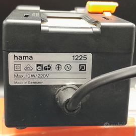 La "Hama Dia Affettatrice 1225" è un accessorio vintage, alimentato a 220 Volt con una potenza di 10 Watt, ideale per tagliare diapositive in modo preciso e ordinato. Grazie al suo design compatto e funzionale, risulta pratica per un uso quotidiano, particolarmente in ambito fotografico. Essendo un prodotto d'epoca, presenta segni del tempo che testimoniano il suo utilizzo, ma mantiene la sua piena funzionalità.