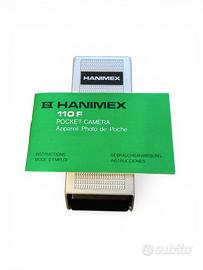 Hanimex 110 F Pocket macchina fotografica a pellicola anni '70 da taschino. Misure 12 x 4,5 cm, con libretto di istruzioni.