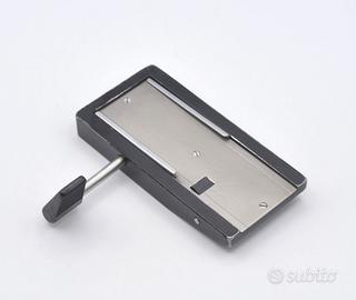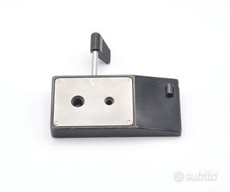Accessorio Hasselblad adatto per montare "rapidamente" la fotocamera su un cavalletto, chiamato "Tripod quick release". E' l'innesto rapido cavalletto di tipologia "lunga", codice 45004, anni '80 circa. Adatto alla serie 500 C, CM, ELM. SWCM, 2000 etc. etc. Buone le sue condizioni estetiche, con qualche segno d'uso, buono il fermo.