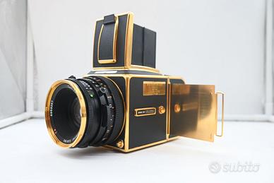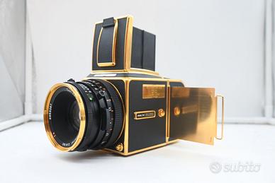 PRODOTTO PARI AL. NUOVO ! PREZZO NON TRATTABILE ! La Hasselblad 500 C/M Gold rappresenta una delle fotocamere più iconiche e desiderate nel mondo della fotografia analogica. Non è solo uno strumento fotografico, ma un vero e proprio oggetto da collezione che unisce precisione ingegneristica, design senza tempo e valore storico. In questo articolo approfondiremo caratteristiche, storia, funzionamento e valore di mercato della Hasselblad 500 C/M Gold, con un taglio ottimizzato SEO per chi cerca informazioni complete su questo modello leggendario. 📷 Cos’è la Hasselblad 500 C/M Gold La Hasselblad 500 C/M Gold è una versione speciale della celebre serie 500 C/M, una fotocamera reflex medio formato modulare prodotta in Svezia. Questa edizione “Gold” è stata realizzata in tiratura limitata, spesso per commemorazioni o anniversari, ed è caratterizzata da finiture dorate e materiali pregiati. È progettata per utilizzare pellicola 120 o 220, producendo negativi quadrati da 6x6 cm, noti per l’elevatissima qualità e dettaglio. 🕰️ Storia e origine della serie 500 C/M La serie 500 nasce negli anni '50 e diventa rapidamente uno standard nella fotografia professionale. La 500 C/M (dove “C” sta per otturatore centrale e “M” per modularità) è una delle versioni più evolute. Caratteristiche chiave della serie: Sistema modulare (corpo, obiettivo, mirino, magazzino intercambiabili) Otturatore centrale negli obiettivi Affidabilità meccanica estrema Le versioni Gold sono state introdotte successivamente come edizioni celebrative, aumentando il valore collezionistico del modello. ⚙️ Caratteristiche tecniche principali Corpo macchina Struttura completamente meccanica Nessuna necessità di batterie per lo scatto Costruzione robusta in metallo Obiettivi Compatibile con obiettivi Carl Zeiss (tra i migliori al mondo), tra cui: Planar 80mm f/2.8 (standard) Distagon 50mm (grandangolo) Sonnar 150mm (tele) Otturatore Otturatore centrale integrato nell’obiettivo