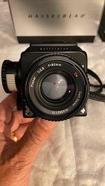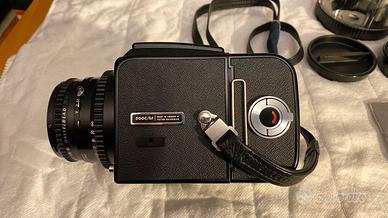 Macchina fotografica Hasselblad 500CM con obiettivo Carl Zeiss Planar 80mm f2.8, incluso magazzino 12 pose, esposimetro originale, scatole e tappi corpo macchina e obiettivo, cinghia tracolla, tutto in perfette condizioni d’uso