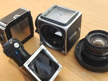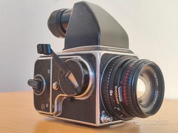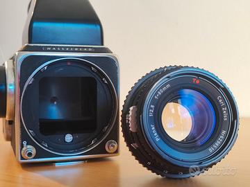 Vendo macchina fotografica analogica medio formato 6x6 Hasselblad 500 cm, con obiettivo Carl Zeiss 80mm C planar T* f 2.8 e vetro di messa a fuoco Acute matte con linea spezza immagine.
