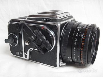 Fotocamera Hasselblad 503CX + 80mm 2.8 Cfe Planar T* + A12 Magazzino in eccellenti condizioni come potete vedere nelle fotografie sottostanti. La fotocamera è fornita con tappo posteriore e posteriore della fotocamera e tappi obiettivo. Dispongo di altro materiale Hasselblad. Contattatemi per ulteriori informazioni.