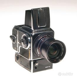 Vendo per inutilizzo Hasselblad EL 500 + Carl Zeiss Distacon T 60mm f3.5 + caricatori pellicola 70 e 220 + impugnatura e staffa flash + pentaprisma lungo + carica batteria + cinghia.
