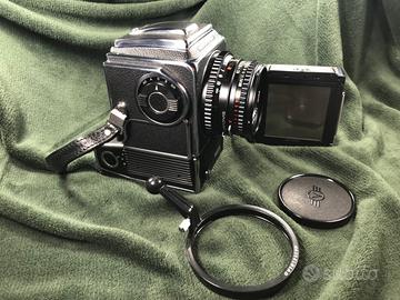 Hasselblad ELM con magazzino A12 + Planar f/2,8 + anello Hasselblad di messa a fuoco + convertitore alimentazione a batterie stilo AAA o ricaricabili + vetro di messa a fuoco oltre che originale anchen uovo BrightScreen: la superficie smerigliata di messa a fuoco e la lente Fresnel scanalata si trovano su lati opposti dello stesso pezzo. Inoltre, un ausilio alla messa a fuoco a combinazione di telemetro a immagine divisa e microprisma. La fotocamera è perfetta e funzionante pochissimo usata solo in studio non ha segni d'uso. Pagamento a mezzo bonifico. Spese di spedizione a carico dell'acquirente tramite corriere privato o Poste a sua scelta.