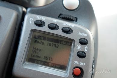 Hasselblad H3D dorso digitale 31 mpx + 80mm f2.8 HC + batterie e accessori. Condizioni più che eccellenti, bassissimo numero di scatti (10792 corpo, 3515 obiettivo vd. foto). Due batterie ricaricabili più terza batteria d'emergenza utilizzabile con batterie normali.