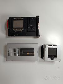 LEGGERE BENE L'ANNUNCIO: Si vende Hasselblad HD1 in perfette condizioni di funzionamento (30,334 scatti) con dorso per pellicola HM 16/32,più due caricatori con custodia. Manca la batteria,e il tappo anteriore. Ottimo per chi possiede già materiale Hasselblad e volesse scattare in pellicola. Il prezzo è trattabile. IN REGALO: DORSO IMACOM IXPRESS,HARD DISK ESTERNO, DORSO POLAROID,CAVI DI COLLEGAMENTO E CARICABATTERIE PER HARD DISK,IL TUTTO PERFETTAMENTE FUNZIONANTE MA DA FAR ASSOLUTAMENTE RICONDIZIONARE POICHÉ COME SI EVINCE IN FOTO AL DORSO DIGITALE BISOGNA SOSTITUIRE IL VETRO DI PROTEZIONE.