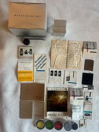 Bellissima Macchina fotografica,hassemblad 6 × 6 con obiettivo Zeiss 80 mm, un magazzino, un magazzino 220, Fili scatto, para luce, tubo prolunga 21, tubo prolunga 55 tracolla, bauletto,knob Exposure, filtri originali rosso giallo verde, garanzia, libretto istruzioni, scatole originali. Tutto quello che si vede nelle foto. Condizioni eccellenti.