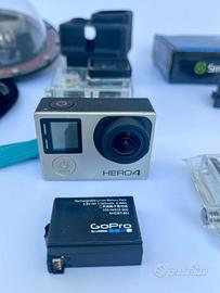 Action cam HERO 4 silver (4k), con 2 batterie extra e charger, vari accessori, dome sferico TELESIN