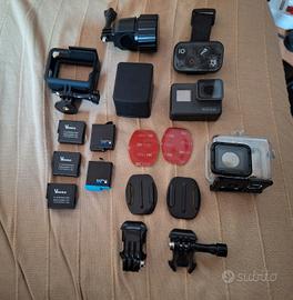 Vendo come da titolo, GoPro Hero 5 black, con accessori presenti in foto, quindi compreso caricabatterie triplo, due batterie originali e tre batterie Vemico compatibili. Remote Control con cavetto di ricarica , supporto manubrio e case subacqueo. No confezione originale . Perfetta