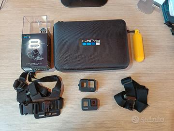 Vendo GoPro hero 8 con ventosa originale, valigia piena di accessori, galleggiante e tracolla da petto e testa (senza scheda SD).