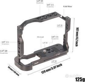 La gabbia presenta un design anti-torsione con la vite di fissaggio della fotocamera da 1/4 "-20 per mantenere la fotocamera fuori dal movimento nella gabbia. Questa gabbia dispone anche di un design anti-torsione con imbottitura sulla base per aiutare la fotocamera da graffi.